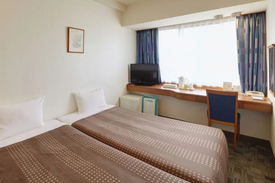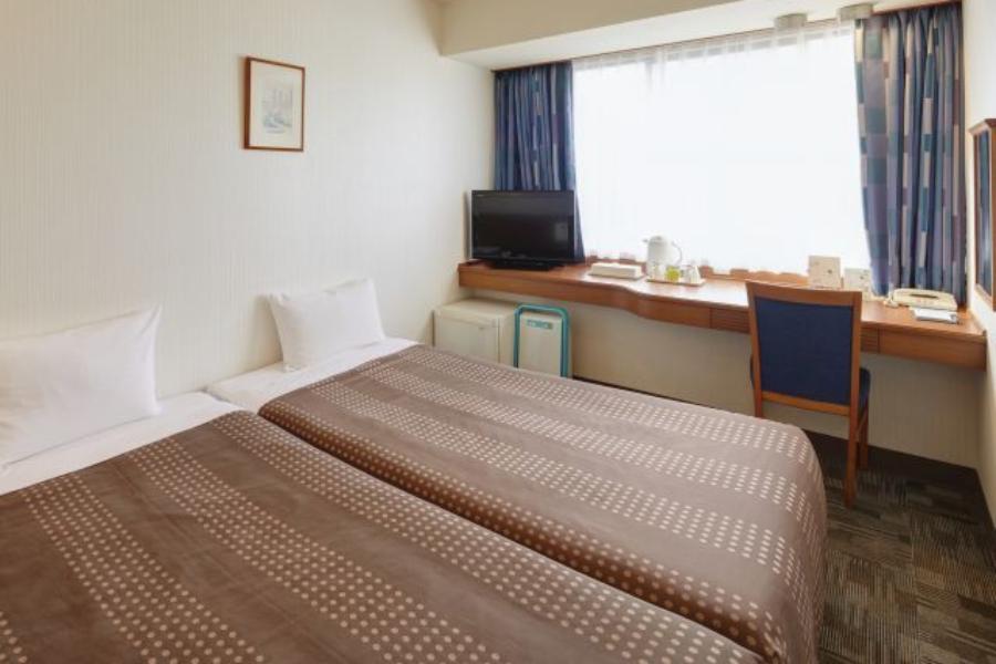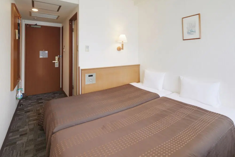 14平米のお部屋にシングルベッドを2台設置した小さめでお手頃なツインルーム。