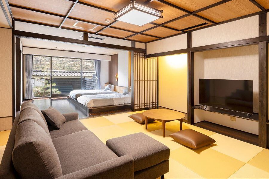 - 四季折々の渓流の自然美を愛でる4つの天然岩温泉が自慢の温泉宿