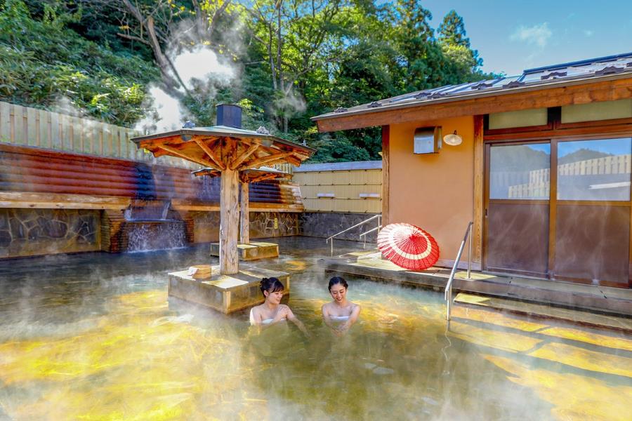 - 「黒湯」と「白湯」2種類の泉質とグルメバイキングを楽しむ温泉宿