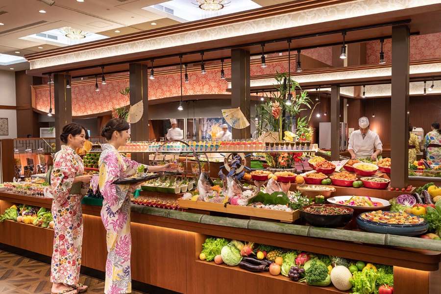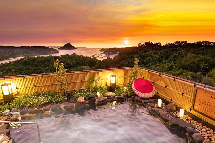 - 天草富士を一望する露天風呂と、海鮮グルメバイキングを楽しむ温泉ホテル