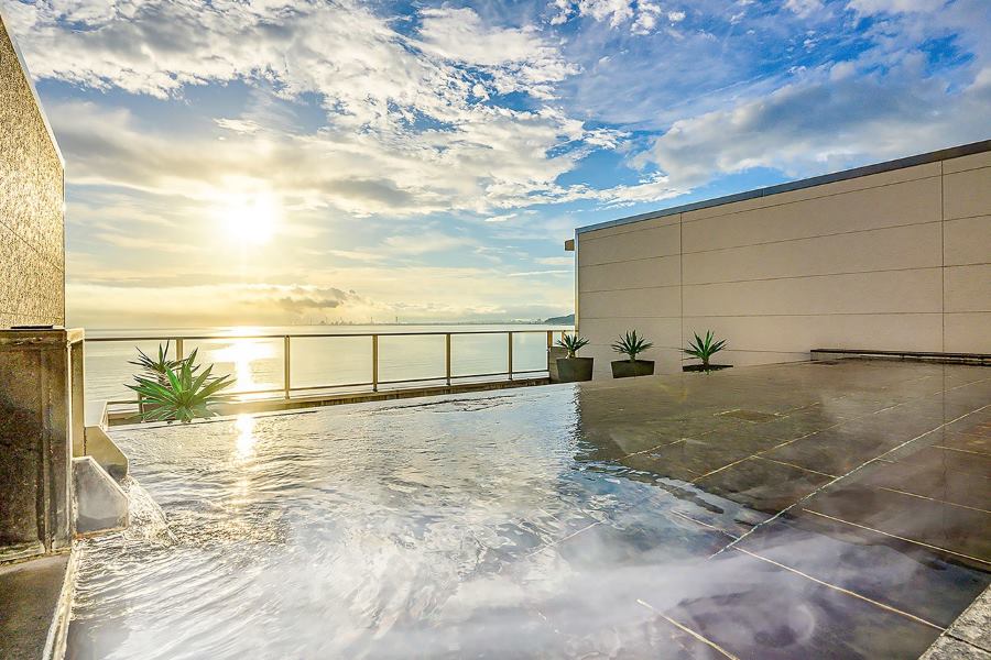 - オーシャンビューの露天風呂と、九州グルメバイキングが自慢の温泉宿
