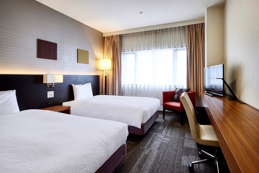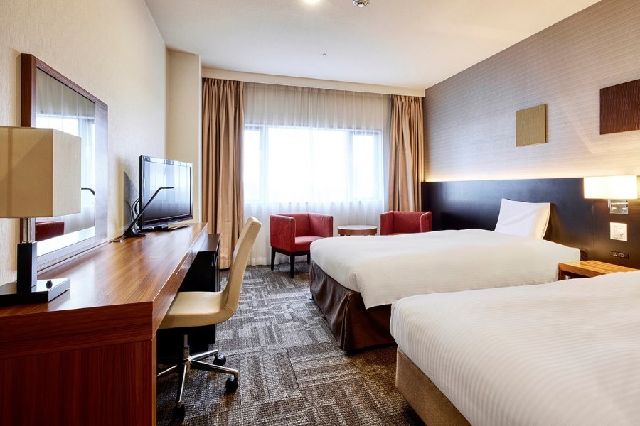 2名様で快適にお過ごしいただけるツインルーム。 すべての客室が12階以上の高層階に位置し、眺望をお楽しみいただけます。
