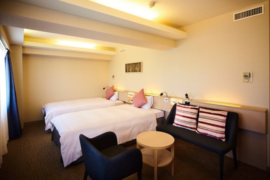 全室禁煙 間接照明が落ち着いた雰囲気を作り出す、スタンダードツイン。20平米の空間を確保した、広々としたお部屋で快適な滞在をどうぞ。