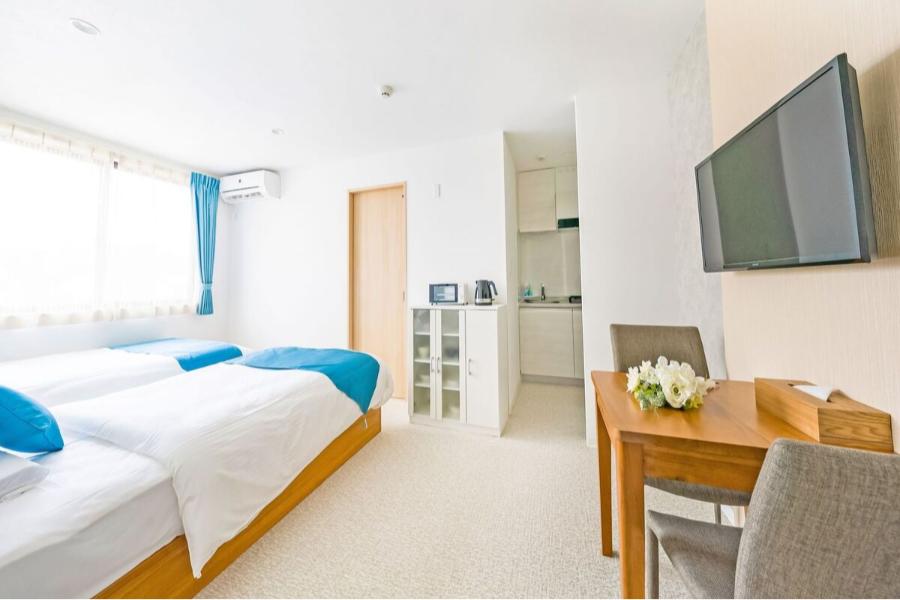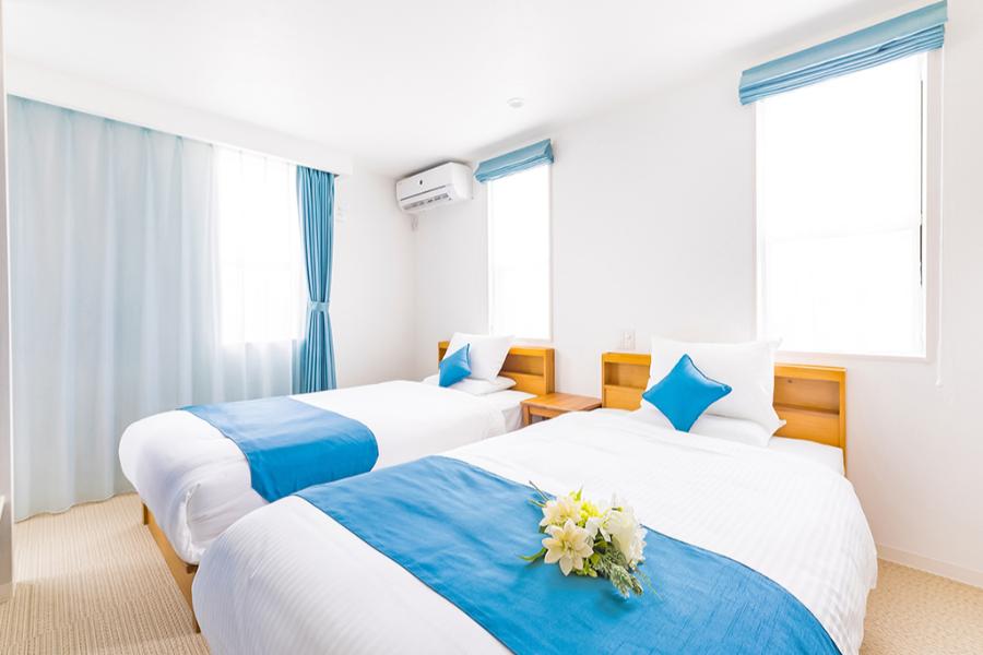 ■お部屋の広さ40平米 ■定員:3名(別途未就学児のみ2名まで添い寝可) ※定員を超えた場合はご宿泊いただけない場合がございます。 ■シングルベッド(113×200cm)2台 ※3名利用時はソファベッド使用 ■洗濯機完備。洗濯洗剤、浴室乾燥機あり