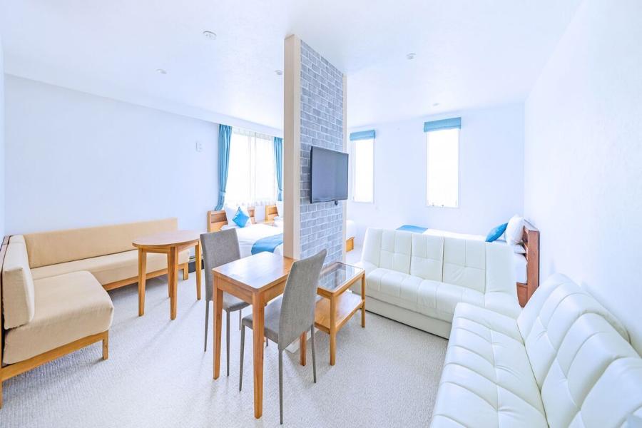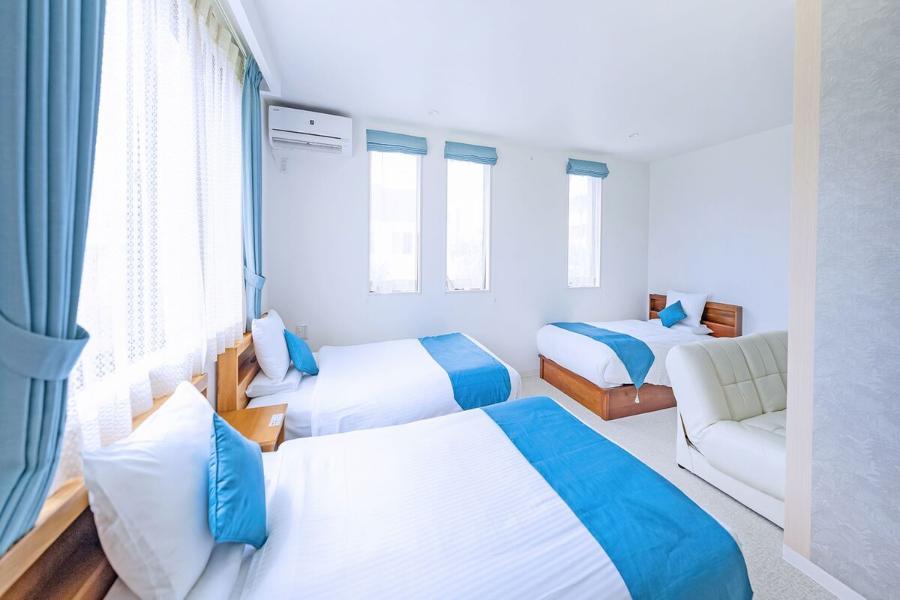 ■お部屋の広さ46平米 ■定員:5名(別途未就学児のみ3名まで添い寝可) ※定員を超えた場合はご宿泊いただけない場合がございます。 ■シングルベッド(113×200cm)3台 ※4~5名利用時はソファベッド使用 ■L字ソファあり ■洗濯機完備。洗濯洗剤、浴室乾燥機あり・洗い場付きバス完備 ■充実アメニティ シャンプー・コンディショナー・ボディソープ・ボディタオル ・ハンド&メークも落とせる洗顔フォーム・歯ブラシ ・コーム・髭剃り・コットン/綿棒