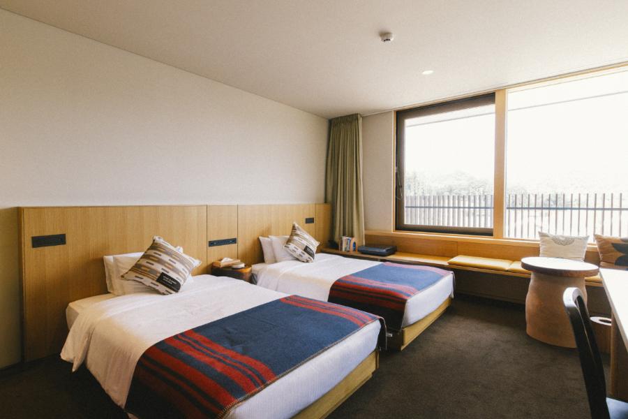 コンセプトルーム/旅籠1 インテリアセレクト D&DEPARTMENT PROJECT 長く愛され続ける「ロングライフデザイン」のアイテムを新品中古問わず取り入れ「ホテルのような、友達の家のような」空間を提案します。家具からコーヒーカップまで、それぞれが画一的でありながら少しずつ異なり、泊まるたびに新たな発見に出会えます。インテリアの一部はD&DEPARTMENT MIEで購入も可能です。 利用人数 : 1~4名様 客室面積 : 63.8平米 ベッドタイプ : ベッド4台 ベッドサイズ : 120cmx200cm