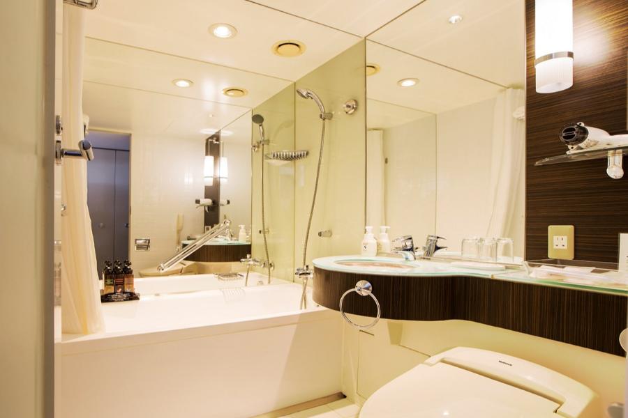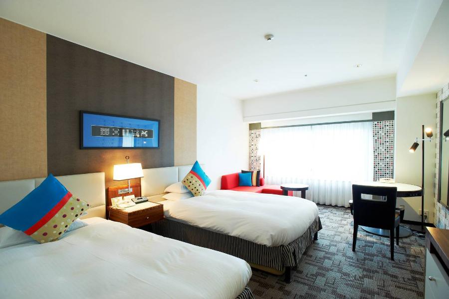南館6~15階にある、黄色や青色を基調とした南仏リゾートの雰囲気漂うサウスリゾートフロアのツインルームです。 全室、独立洗面台を配し、バルコニー付きの広々とした客室で、ゆったりとお寛ぎいただけます。