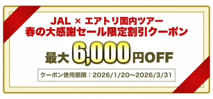 合計旅行代金50,000円以上で、最大6,000円OFF☆